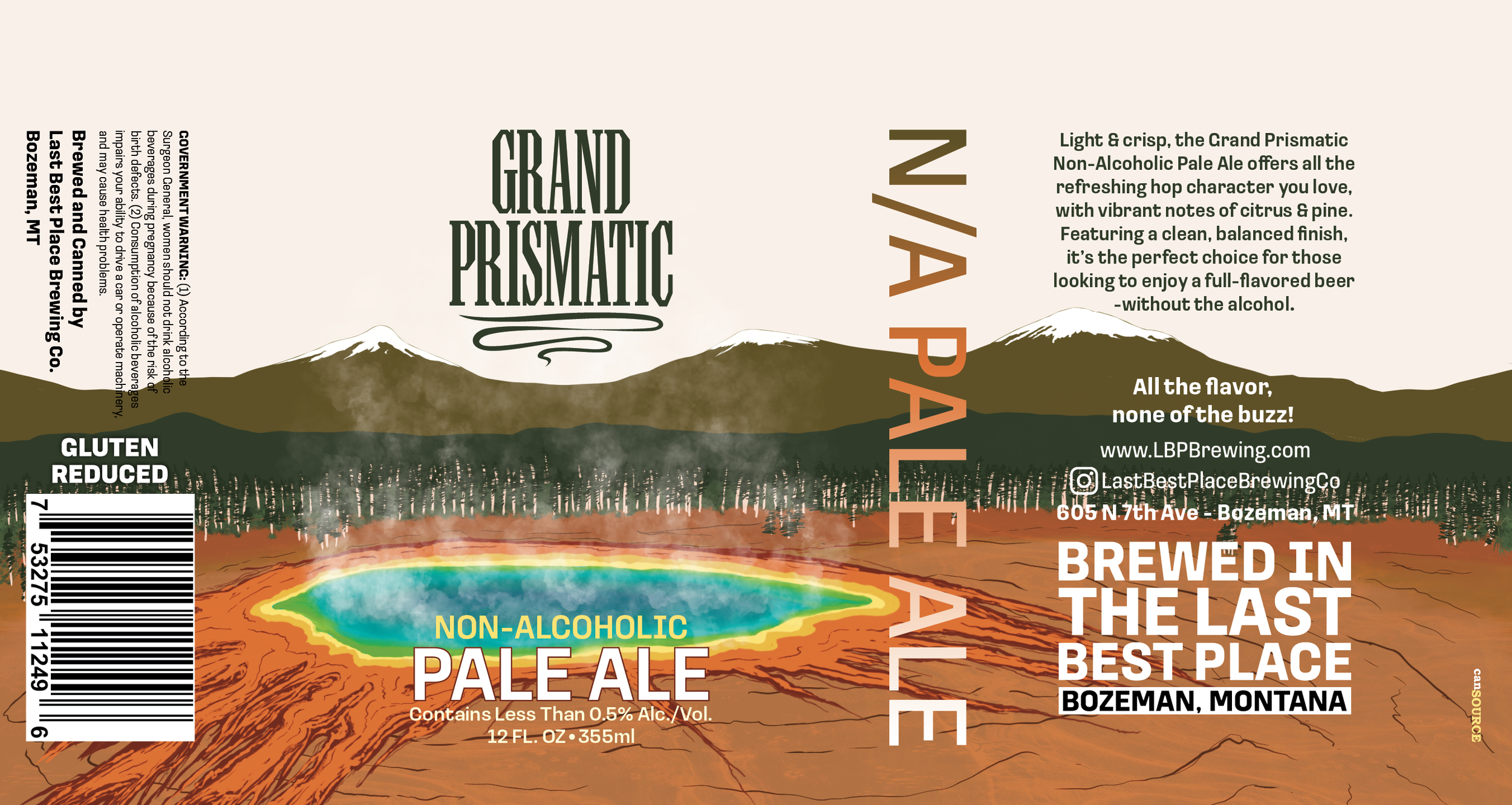 Illustrations and can designs for Last Best Place Brewing’s Non-Alcoholic beer line released Winter 2026.